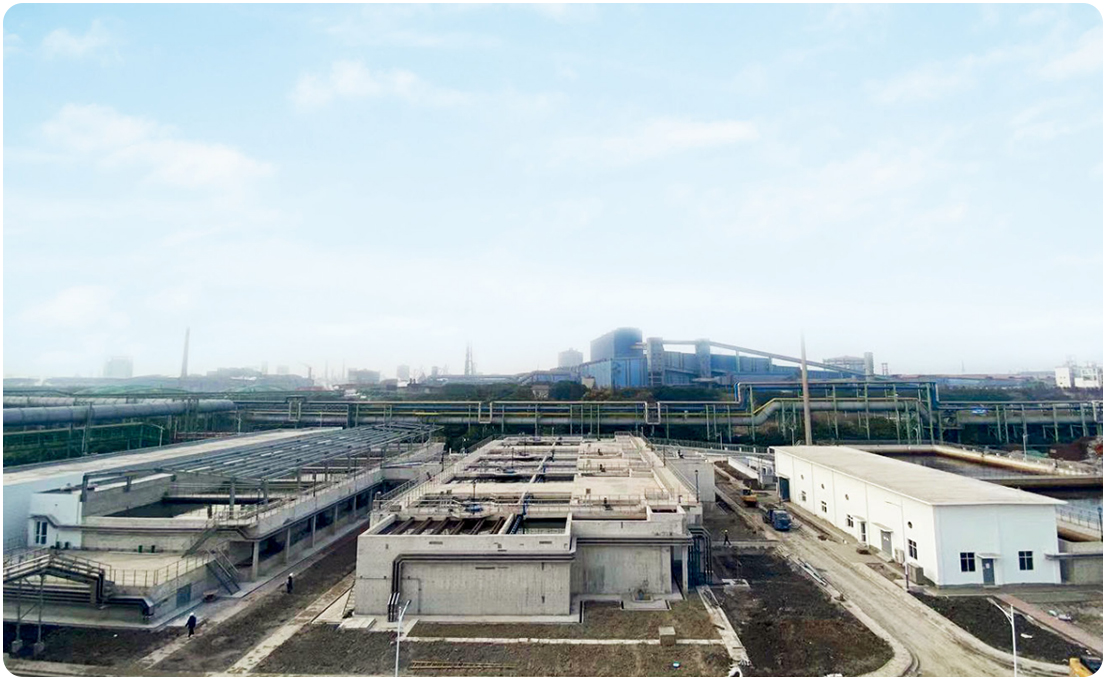 工程項(xiàng)目采用預(yù)處理+多流向強(qiáng)化澄清池+V型濾池處理工藝,在多流向中投加雙堿,控制合適的PH,去除污水中的硬度,同時(shí)去除水中懸浮物、磷酸鹽、COD等。污水經(jīng)過處理后大部分提升至生產(chǎn)新水管網(wǎng),少部分外排至廠區(qū)外。工程投資約9000萬,運(yùn)行成本0.53元/噸。 出水主要指標(biāo):COD<30mg/L,SS<5mg/L,油類<2mg/L,硬度<100mg/L,總磷<0.5mg/L。工程采用“花園式工廠”“智能工程”的建造模式,極大提升了沙鋼廠區(qū)形象。